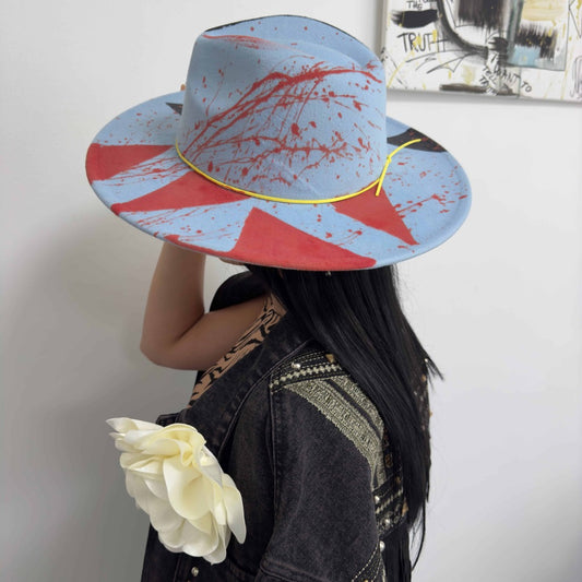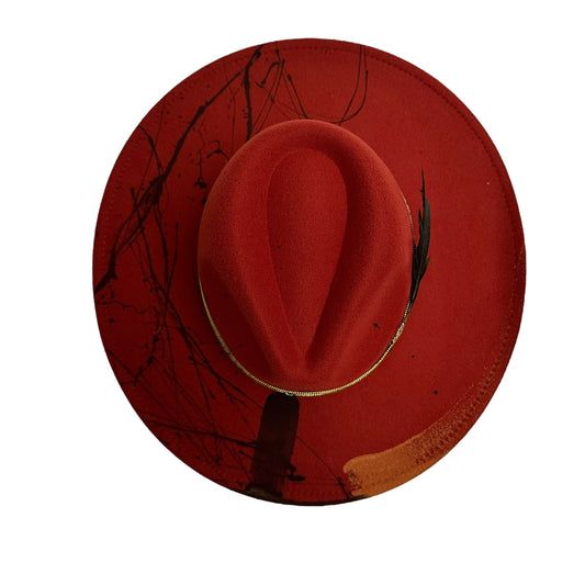 Palarie Fedora, caramizie, cu bor lat, handmade, pictata manual, reglabila, Sinika