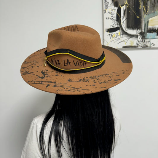 Palarie maro, cu bor lat, handmade, pictata si accesorizata manual, reglabila, Sunita