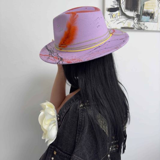 Palarie mov, handmade, pictata si accesorizata manual, Purple Heart