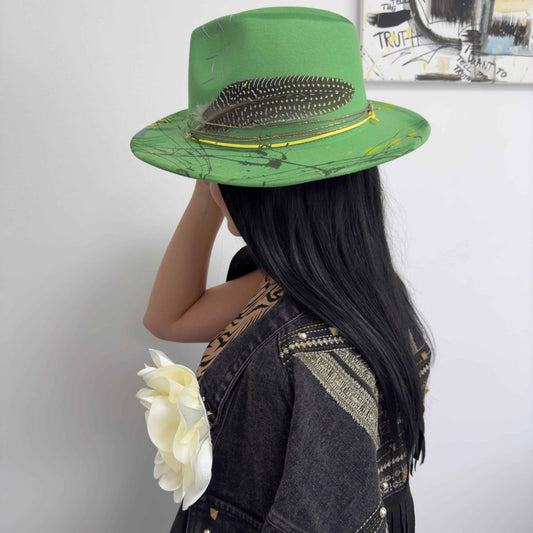 Palarie verde, handmade, pictata si accesorizata manual, Green Love